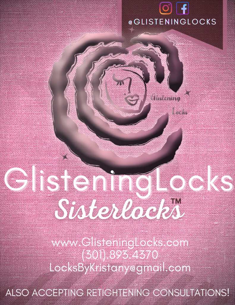 Hey there! I’m Kristany Niblack, a Sisterlocks practitioner with more than 5 years of natural hair care and retightening/maintenance experience. I LOVE what I do, and I have been trained under the strict supervision of a Sisterlocks consultant who has been in the Sisterlocks industry within Maryland for over 10 years. I would appreciate the opportunity to get to know you better by doing a consultation before an appointment can be booked. I am COVID-19 barbicide certified and keep a sanitized workspace at all times, so everything at my salon booth will be cleaned before your arrival. If you have any additional questions, please do not hesitate to contact me using the information below. I’m looking forward to meeting you!